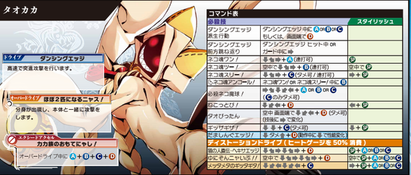 Gato Posted July 22, 2015 Posted July 22, 2015 Tao CF stuff I think. Someone translate. EGO @egokaka Jul 18View translation タオカカ 6A、5Cガード時jc可 2B硬直増 6B猫22Aカルルに確認 3C(3)の浮き高く、必キャン可に。3C猫1繋がる 立ちくらい5C6C、2C6C繋がらず 立ちくらい5CJAJC確認 ねこっとびJCがねこっとびJBの下位互換として使われそう 猫3溜めで中段 #BBCF EGO @egokaka Jul 18View translation タオカカその2 5Cのヒット硬直減少。補正次第で屈5C6Cや空中5CJC等が繋がりづらく 6C空chで中央壁バン ゆにぞん壁バンせず。CP1の性能? J攻撃すべてjc可 J攻撃ガトリングの変更。JCからは猫2しか出せず。J2BからJBJCが出た…はず。再確認求む #BBCF EGO @egokaka Jul 19View translation タオカカその3(コンボ関連) ヘキサ、メタギタdm2400くらい J2Dが強制ダウン 中央密着3C猫3繋がる。3C猫3hjJCJ2DA2B5ChjJBJCJCJ2DA2B~とかできた 空くらい猫3が少しバウンド。3C猫3アンコ繋がらず 3CねこっとびJC繋がらず #BBCF みずか み @mizukami_snake Jul 19View translation タオカカBBCFロケテ ヒット時J2B>JBとJ2B>JCは確認。ガード時でも出るよね多分 3C>猫1>4Dと3C>猫1>ねこっとびJAは多分無理かな……4D早くなってるけど 中央3C>猫1>5Dから拾おうとしてみたけど5DBからも5D6~も厳しそうだった。端専用のパーツ? EGO @egokaka Jul 19View translation タオカカ追記 DE同技は無い(表示されてないだけか?)体感でも同技ついてない気が 3C猫15DBですごい運ぶ。拾えるか? #BBCF