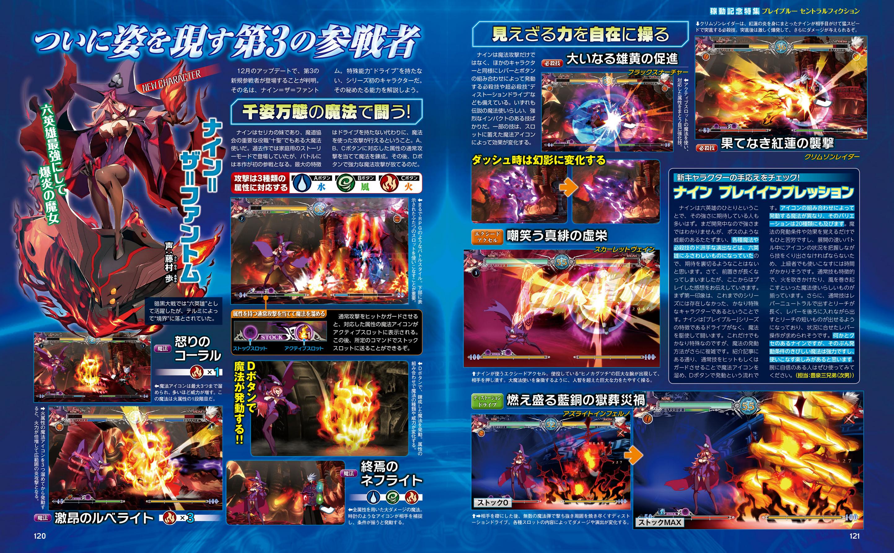 Sourenga Posted November 26, 2015 Posted November 26, 2015 Command list translation post or something like that... Movelist picture is too low quality to make out complete names for all of her spells, but at least the jewels in the attack names are very recognizable... Better quality is out. Here are the full Spell names:MAGIC SPELLSShawl of Everlasting Darkness [Nothing] Lapis Lazuli of Sorrow [Wa] Sapphire of Grief [Wa+Wa] Tanzanite of Lamentation [Wa+Wa+Wa] Emerald of Suffering [Wi] Peridot of Distress [Wi+Wi] Malacite of Tragedy [Wi+Wi+Wi] Coral of Anger [Fi] Garnet of Wrath [Fi+Fi] Rubellite of Fury [Fi+Fi+Fi] Heliodor of Submission [Wa+Wi] Amethyst of Massacre Bomb [Wa+Fi] Citrine of Rotation [Wi+Fi] Celestite of Commitment [Wa+Wa+Wi] Taaffeite of Glamour [Wa+Wa+Fi] Andradite of Sealing Bind[Wi+Wi+Wa] Uvarovite of Destruction [Wi+Wi+Fi] Kunzite of Prison Smash [Fi+Fi+Wa] Morganite of Pulsation [Fi+Fi+Wi] Nephrite of Demise [Wa+Wi+Fi] OVERDRIVE: Burning Red (バニングレッド) Even if A/B/C normals whiff, the Active Slot ingredients turn into spells. EXCEED ACCEL: Scarlett Vein (スカーレット・ヴェイン)SPECIAL ATTACKS Crimson Raider 214+A [Air OK] (クリムソンレイダー) Mauvette Roar 214+B (モーベットロア) Navy Pressure 214+C (ネイビープレッシャー) Sea-moss Gate 236+D [Air OK |Switches the content of Active Slot and Stock Slot] (シーモスゲート) Flax Nurture 214+D [Air OK] (フラックスナーチャー)DISTORTION DRIVES Flame Punisher 236236+A (フレイムパニッシャー) Cardinal Nova 236236+B (カーディナルノヴァ) Azurite Inferno 236236+C (アズライトインフェルノ) EDIT: Whoa, I missed one... Thanks for pointing it out, Tokkan.