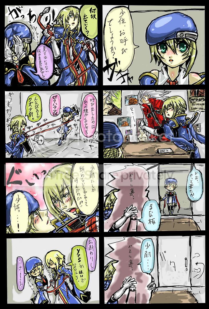 Circuitous Posted August 26, 2010 Posted August 26, 2010 WELCOME TO THE BLAZBLUE FANART THREADPost art in this thread!Rules for posting art:- Post the source if you have it!- If you don't have it, find it!- If you can't find it, ask for it!- Post thumbnails for large images!- Keep [NSFW] stuff behind links, and tag them!- If you're not sure it's [NSFW], tag it anyway!- DO NOT use image hotlinks to Pixiv/Danbooru for anything. Sources should be artist pages, not image links.- Original Characters aren't fanart.- 63, cosplay, and most crossovers are okay.- If your post doesn't contain fanart or doesn't follow these rules, it will be deleted.- If you wanna discuss how shitty this thread is, PM me.What if I want to post my fanart, whatever it may be, and get comments and such?Most art sites already support commentary, but if you're not using such a host or want to discuss your art with Dustloop, the easiest way would be to make a thread for yourself in Zepp Museum. Don't be shy, just do it.Why are you such a Nazi?Because the last thread sucked. I'd like this one to suck less, from a getting-and-viewing-fanart perspective.Who has art threads up right now?- Sesame- Incognito- Sorael- psilynHow the heck are people finding Japanese fanart?!http://www.pixiv.net/http://danbooru.donmai.us/http://www.gelbooru.comhttp://www.google.comJapanese names!BlazBlue: ブレイブルーArakune: アラクネBang (Shishigami): バング (シシガミ)Carl (Clover, Nirvana): カルル (クロヴァー、ニルヴァーナ)Hakumen: ハクメンHazama: ハザマTerumi: テルミJin (Kisaragi): ジン (キサラギ)Jubei: 獣兵衛 (typed: keimono hei mamoru)Kokonoe: ココノエLambda-11: ラムダー ・ λ-11 ・ /\-11Litchi (Faye-Ling): ライチ (フェイリン)Makoto (Nanaya): マコト (ナナヤ)Mu-12: ミュー ・ μ-12Nine: ナインNoel (Vermillion): ノエル (ヴァーミリオン)Nu-13: ニュー ・ v-13 ・ ν-13Platinum: プラチナRachel (Alucard): レイチェル (アルカード)Ragna (the Bloodedge): ラグナ (ザ ブラッドエッジ)Tager: テイガーTaokaka: タオカカTsubaki: ツバキ (-ヤヨイ)Valkenhayn: ヴァルケンハイン
