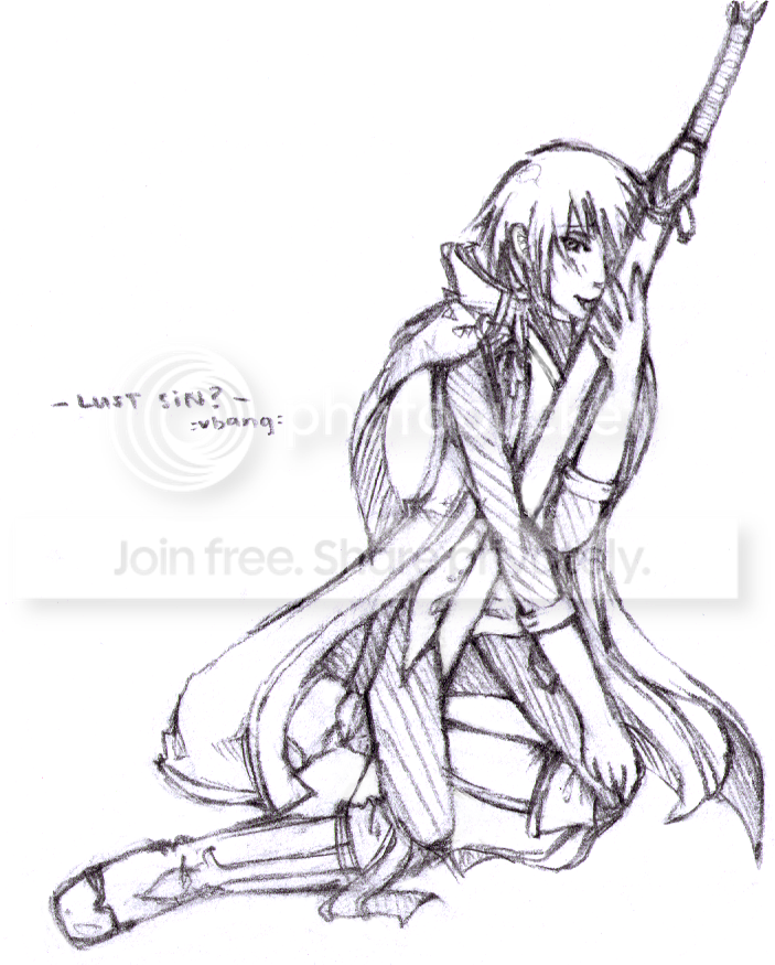 2nd_God Posted September 5, 2010 Posted September 5, 2010 Had this idea just an hour or so ago. I'm think about attempting at coloring it now. http://i2.photobucket.com/albums/y34/psilocyb3/Original_Ahrt/Raw_Picituers/newscans002.jpg Or rather, maybe a little nap first. ////////nap over, edit//////// Okay, here's what I've gotten from it. Didn't really want to spend much time on a background.. Geez, I hate my colouring ability.