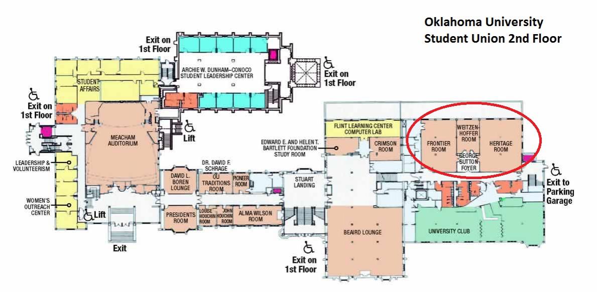 14. Original Thread with Rules: http://www.smashboards.com/showthread.php?t=305006 Arcana Heart 3, BlazBlue Continuum Shift 2, Melee, Brawl May 28th, 2011 (Saturday) Norman, OK Be sure and join the Facebook Event Contact Information- PM SolidusSpriggan!, or text Forest Sharp - 405 464 5348 We need BBCS2 setups! If we can secure 2 more full setups that'll probably be enough. That includes CS2 update and the 3 DLC characters. Due to higher turnouts than expected, we need equipment. Mostly TVS. If you have lagfree (Tube/CRT) TVs please bring them. If you bring a setup I'll waive your venue fee! Welcome to the 3rd round of Oklahoma Monthlies. AKA The Norman Oklahoma Monthlies. Don't think that we are focusing on Norman, these events hope to reach players statewide and beyond. The purpose of monthlies is twofold. 1. To improve our game in state and prepare for tournaments. 2. Encourage an active scene of amateurs and professionals. HxC is running Halo Reach 4v4 another part of the building, for info on that go here. Location Heritiage Room in the Oklahoma Memorial Student Union at the University of Oklahoma (2nd floor, location of OH SNAP 5! remember that?) 900 Asp Ave # 428 Norman, OK 73069-4849 The parking meters are free on Saturday. There are many parking lots nearby one block away on street Jenkins and on Trout street. Garage parking is $2 per hour See map at bottom for building interior Time: Setup/Friendlies 11:30 PM Regsitration Opens 12:30 PM Registration Closes 1:00 PM Tournaments Begin 1:30 PM (Arcana & BB after Melee Singles end, probably around 3:30. I'll close registration for those around 2:00, just contact me if your in transit.) Afterwards smashfest/fightnight at my place! Fees $5 Community Fee (Waived if you bring a full lagfree smash setup with TV, or a full capture setup.) $5 Smash Singles $10 Smash Teams (per team, $5 per player) $5 for Arcana Heart 3 $5 BlazBlue Continuum Shift II (Please PS3 setups with all characters unlocked, I'll waive your venue fee) (if AH3 has less than 8 entrants it will be round robin, and a free single elim bracket with candy prizes will be held afterwards.) Payout for all Tournaments <16 entrants = 70/30 >17 but <24 = 60/30/10 >24 = 55/25/15/5 17-24, top 4 25+ Finally I encourage people to use the Smash facebook group to keep up with casual and competitive Oklahoma Smash events.
